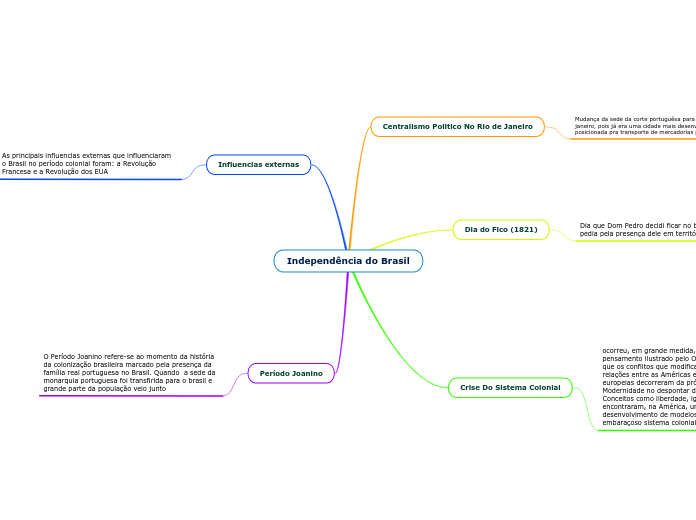 O mapa mental exposto trata-se do tema de. PERÍODO JOANINO E INDEPENDÊNCIA - MAPA MENTAL. Ensinar por exemplo o aluno a realizar o mapa mental do entorno da escola ou de seu trajeto da escola até em casa é uma atividade que pode ser feita no.