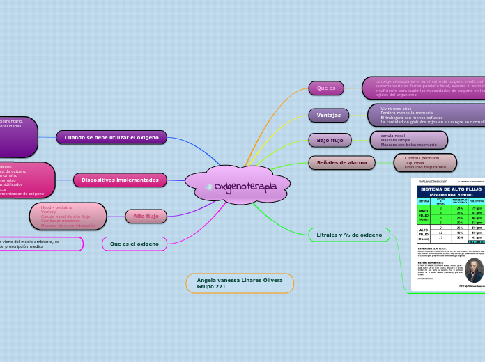 La oxigenoterapia se trata de una medida terapéutica que consiste en la administración de oxígeno para tratar o bien prevenir diversos síntomas y dolencias. CÓMO CREAR UN MAPA MENTAL. Cada litro aumenta 4 de níveis de o2 21 AA 4.